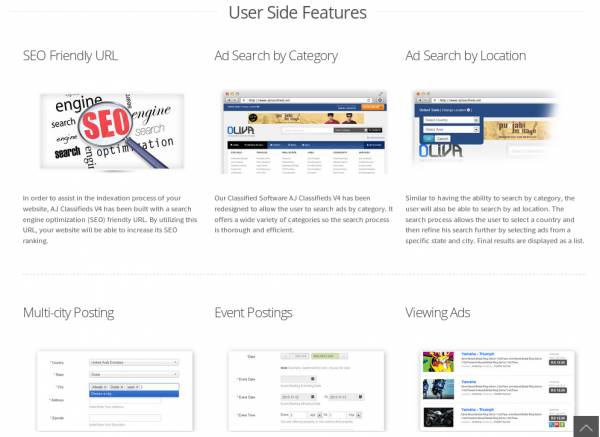 AJ Classifieds V4 a Complete Classifieds Ads Software has come up with all the advanced features you need to set up your own classifieds website. The script helps you to start a compelling classifieds website which differentiate itself from already overcrowded online classifieds sites and is going to be ahead from others. New advanced features like attribute based system, - Responsive Layout - Bootstrap Based Design are added. Further the new version will also offers SEO & web 2.0 features like seo friendly url and ads sharing via social networks. Also in the admin side features major new features added., Attributes management, Attributes group management, Flexible Layout Setting, Advertiser Management, Currency Setting, AJ Classifieds V4 is available in three versions pack like lite, Basic & pro & it is the most affordable classifieds ads software with just 99$. So, Its time to start classifieds business with AJ Classifieds V4.