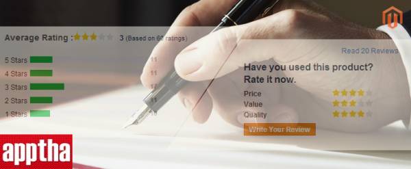 Apptha- Magento Reviews and Ratings is an extension for ecommerce sites. It allows the shoppers to write reviews for the product, which is helpful for the visitors who are looking to purchase.