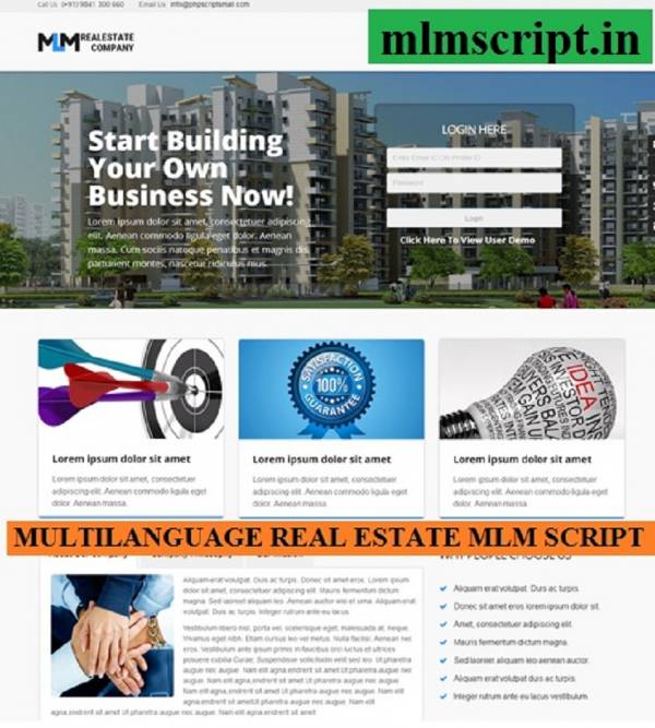 Real Estate Multi-Level Marketing Software is providing you with a user-friendly script with high quality, specialization of this script is user having simple operating knowledge of computer, and customization is possible with a mere knowledge of PHP.